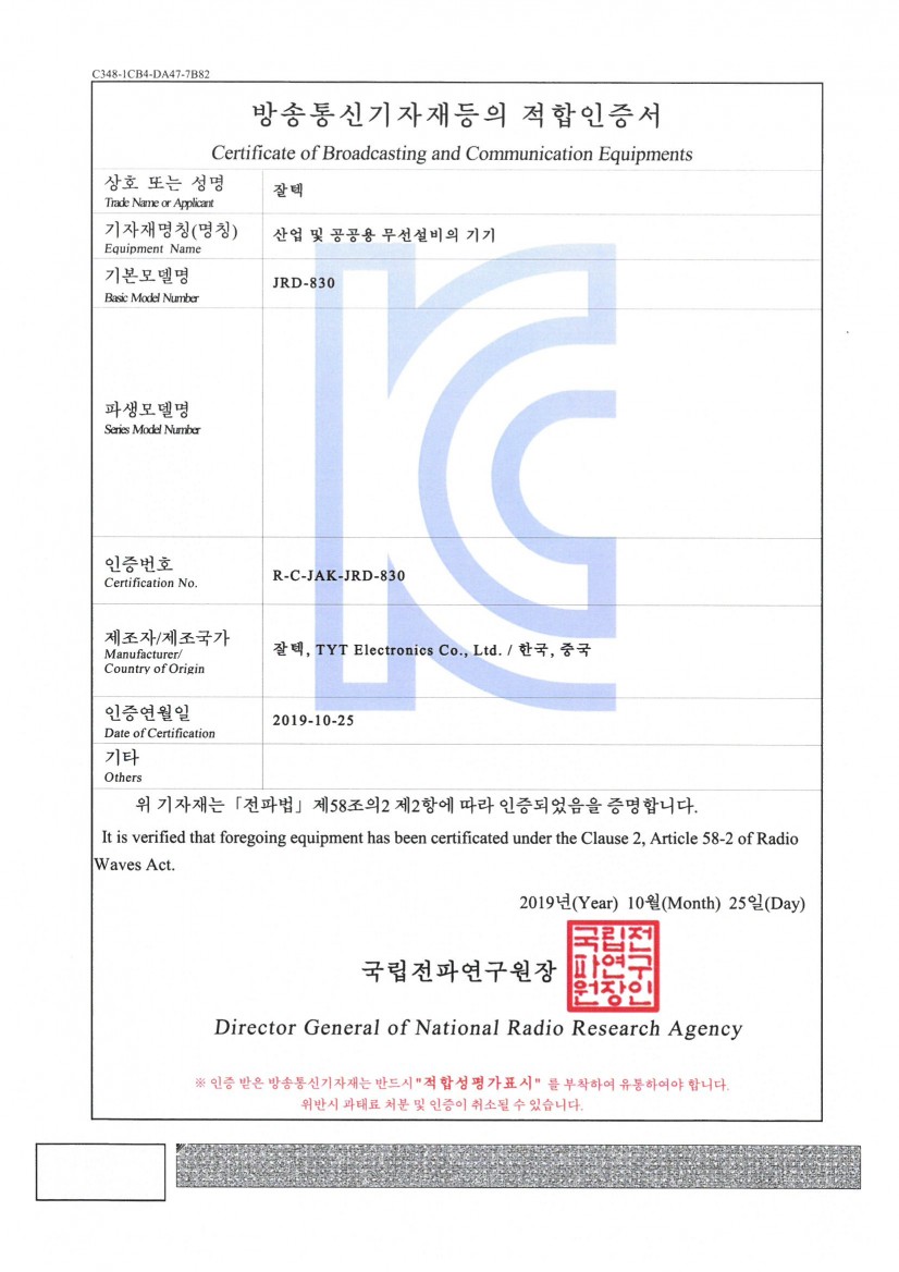 목록 [기타] 제품인증서(JRD-830 Series) 작성자 잘텍 작성일 20-01-24 11:44 | 조회 53,096 | 댓글 0 본문 디지털 중계기 JRD-830 Series 인증서입니다. 이전글다음글 댓글목록 0 등록된 댓글이 없습니다. 목록